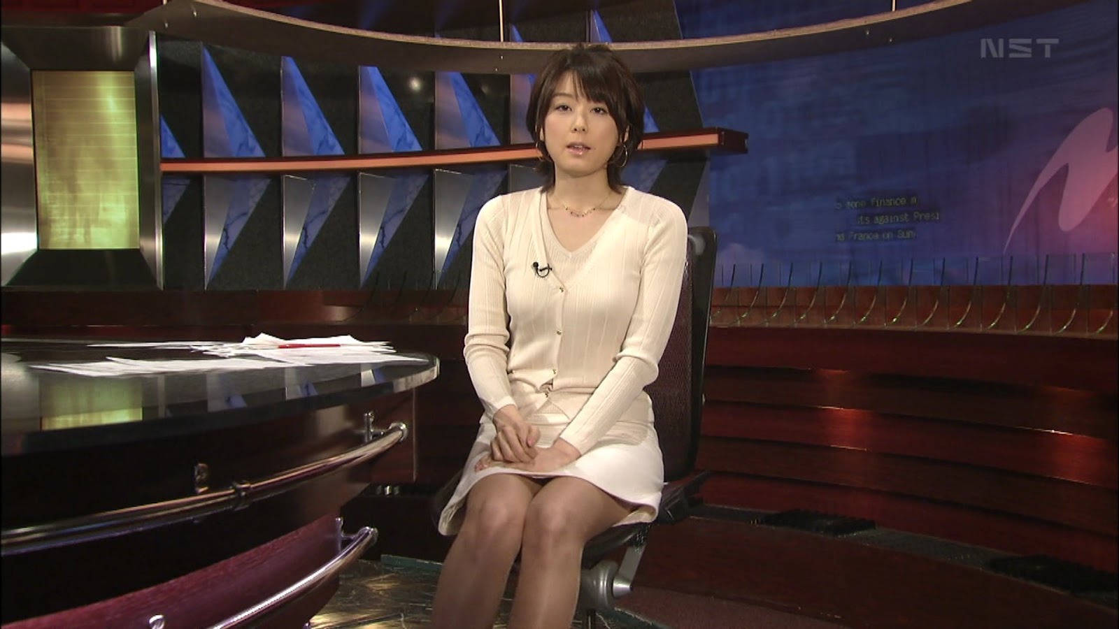 12年2月20日 ニュースJAPANより 秋元優里アナの美脚・ミニスカ